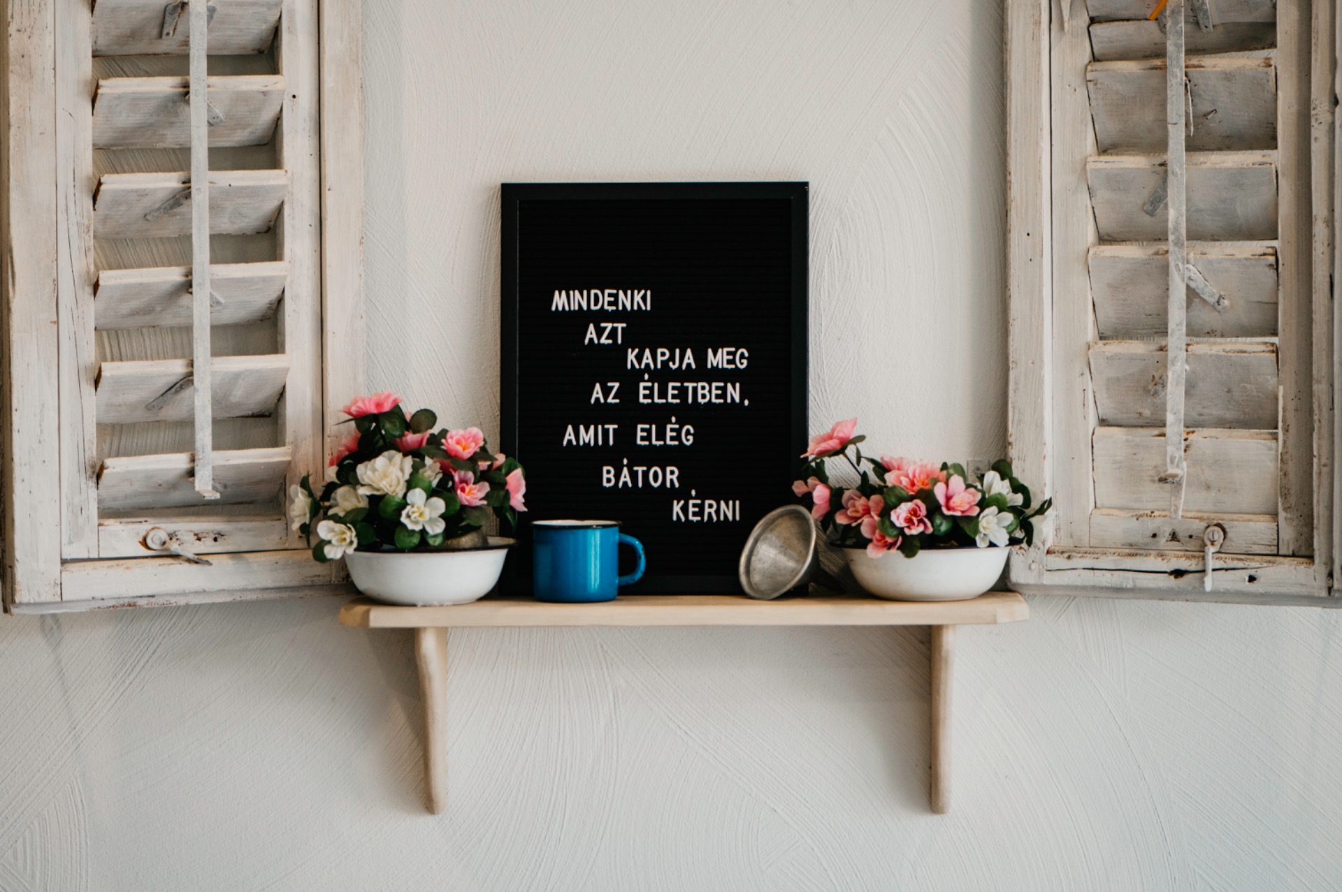 Tele van a vendégtér pozitív idézetekkel és régi vintage bútorokkal…Mesélsz erről egy kicsit?